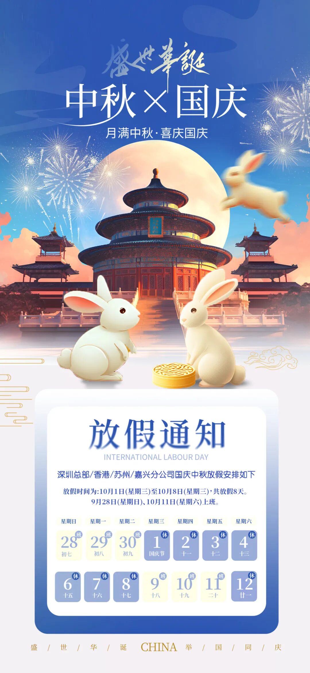 Ezkey国庆中秋放假通知!